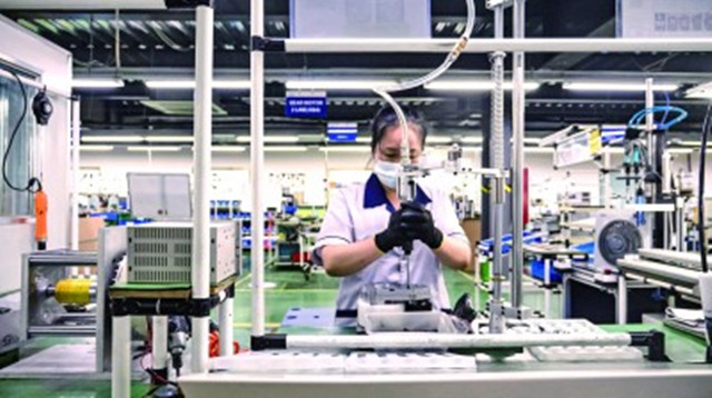今年以来,青岛市即墨区全力打造科技创新全要素服务品牌,当地市场监管局深入科技企业,通过动态管理、分类培养、精准服务等服务举措,激发科技企业的创新活力。图为7月11日,当地科技企业员工在智能数字化车间进行动力马达组装。逄文越摄(光明日报7月13日8版)